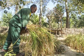 برداشت برنج به روش سنتی در پارک ایران کوچک