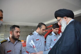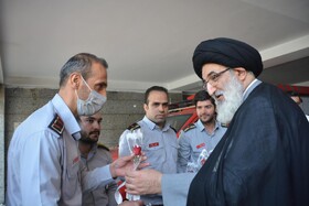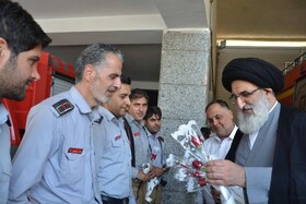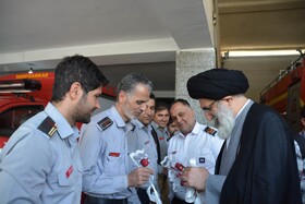 آیت‌الله حسینی همدانی، نماینده ولی فقیه در استان البرز و امام جمعه کرج با حضور در ایستگاه ۱۰۸ عملیاتی ضمن قدردانی از آتش‌نشانان و اهدای گل به آنان به مناسبت هفته ایمنی و آتش‌نشانی، پای صحبت این قشر زحمتکش نشست.