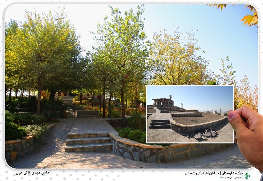 بوستان بهارستان در منطقه ۷ شهرداری کرج مجموعهای شامل فضای سبز، زمین بازی کودکان، زمین ورزشی چندمنظوره، مسیر تندرستی، آبنما و آبشار صخرهایست که در زمینی به مساحت یک هکتار، و با موقعیت کوهستانی بنا شده است. این بوستان آذرماه ۱۳۹۷ به بهره برداری رسید که نه تنها موجب تغییر سیمای محله کمبرخوردار شد بلکه حس سر زندگی و نشاط را برای ساکنان آن محله به ارمغان آورده است.